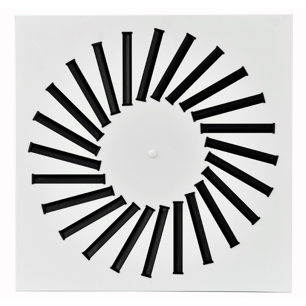 Anemostaty sú vyrobené z pozinkovaného plechu s bielou vypaľovanou farbou (RAL 9016). Lamely sú vyrobené z plastu a sú natreté čiernou farbou (RAL 9005).