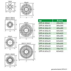 Anemostaty sú určené na inštaláciu do stropu na prívod a odvod (bez lamiel) vzduchu. Montážna výška 2,5 - 4,1 m.