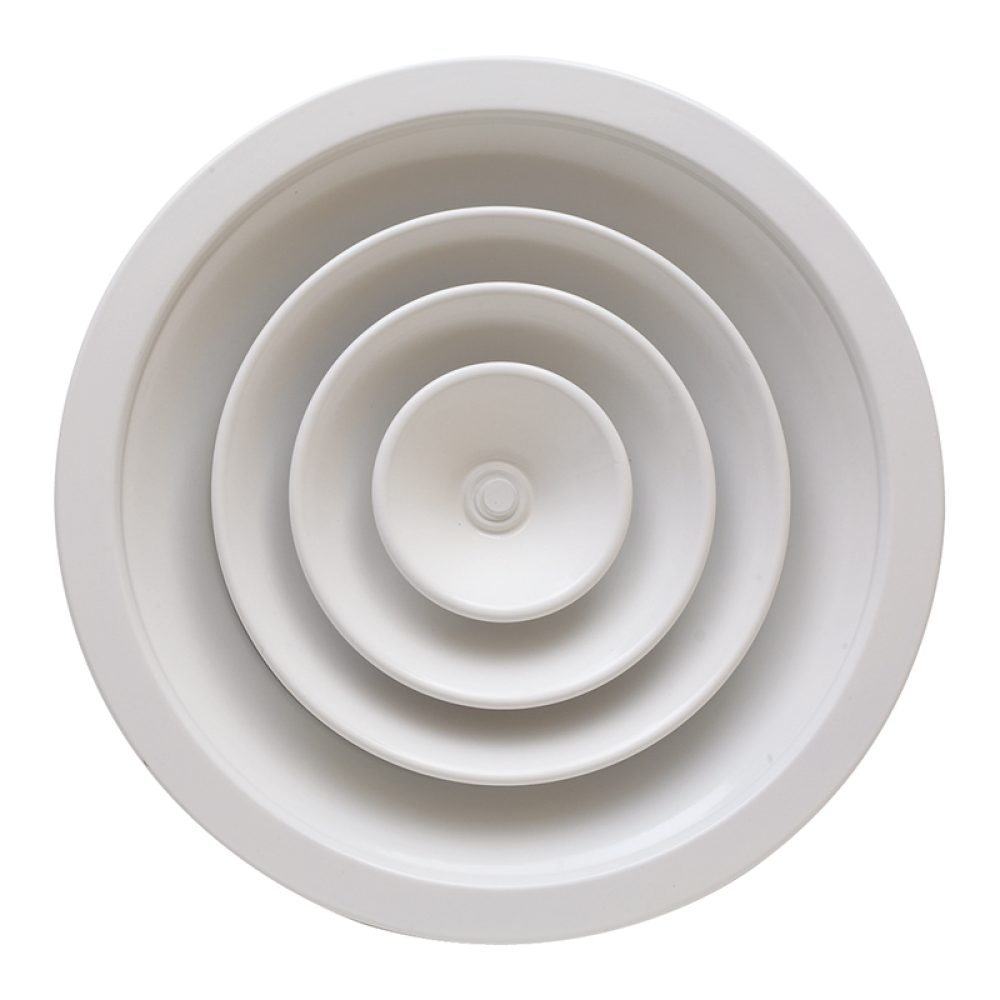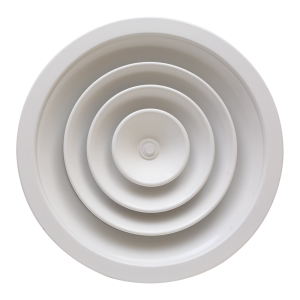 Kruhové anemostaty s pevným kužeľom, odnímateľným stredovým prvkom a spätnou klapkou.
