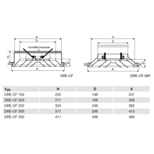Kruhové anemostaty s pevným kužeľom, odnímateľným stredovým prvkom a spätnou klapkou.