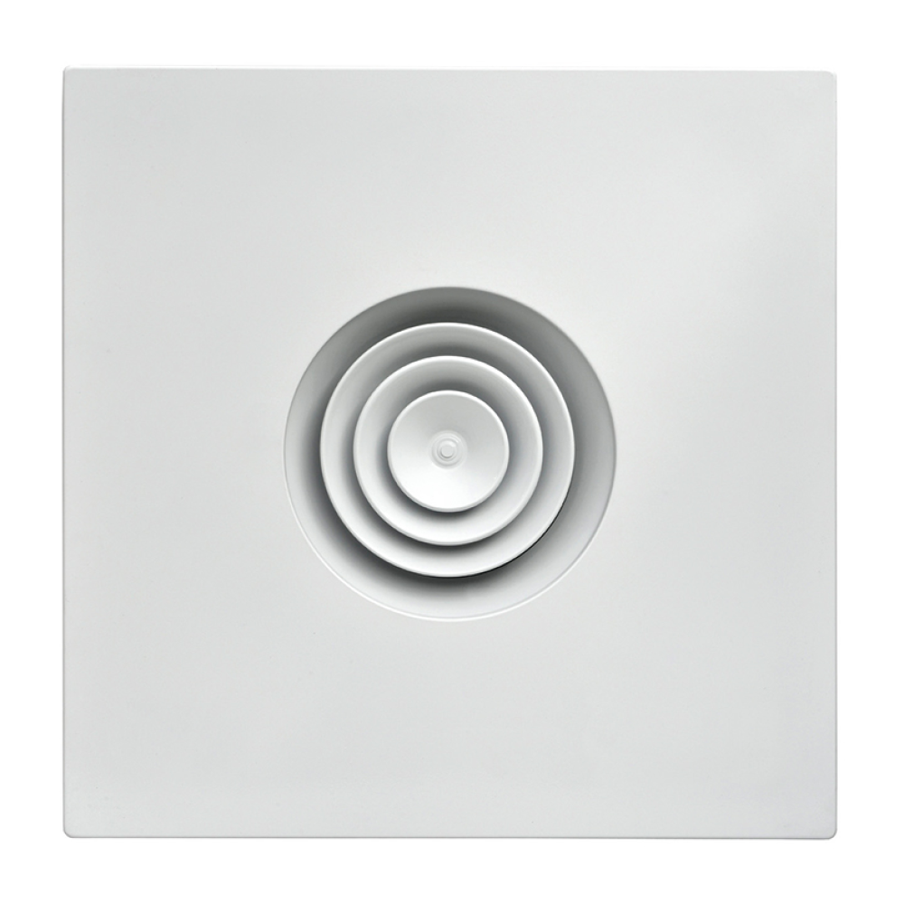 Kruhové anemostaty s pevným kužeľom, odnímateľným stredovým prvkom a spätnou klapkou.
