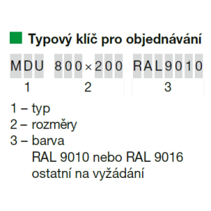 Obdĺžnikové panely sú vyrobené z Al profilu s povrchovou úpravou zapekacou farbou RAL 9010 alebo RAL 9016. Iné farby v základných odtieňoch RAL sú k dispozícii na požiadanie za príplatok.