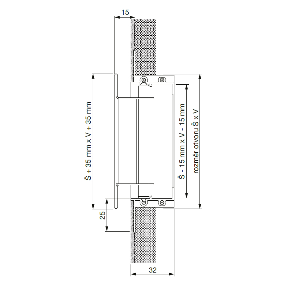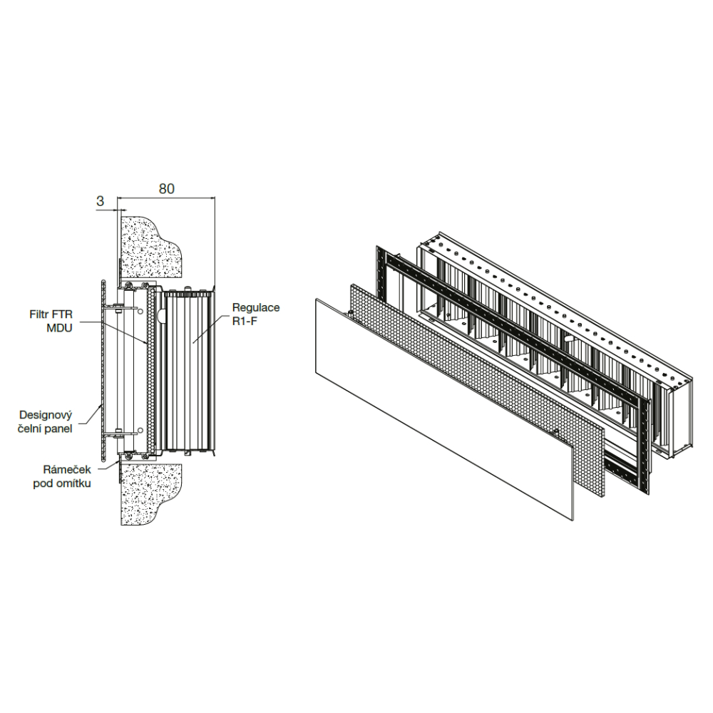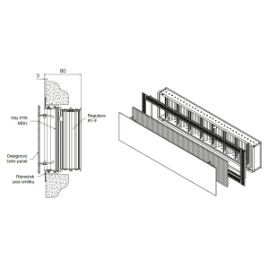MDU panely sa montujú ukotvením rámu priamo na stenu a následným prekrytím rámu omietkou. Otvor pre rošt je v základnom rozsahu š x v.