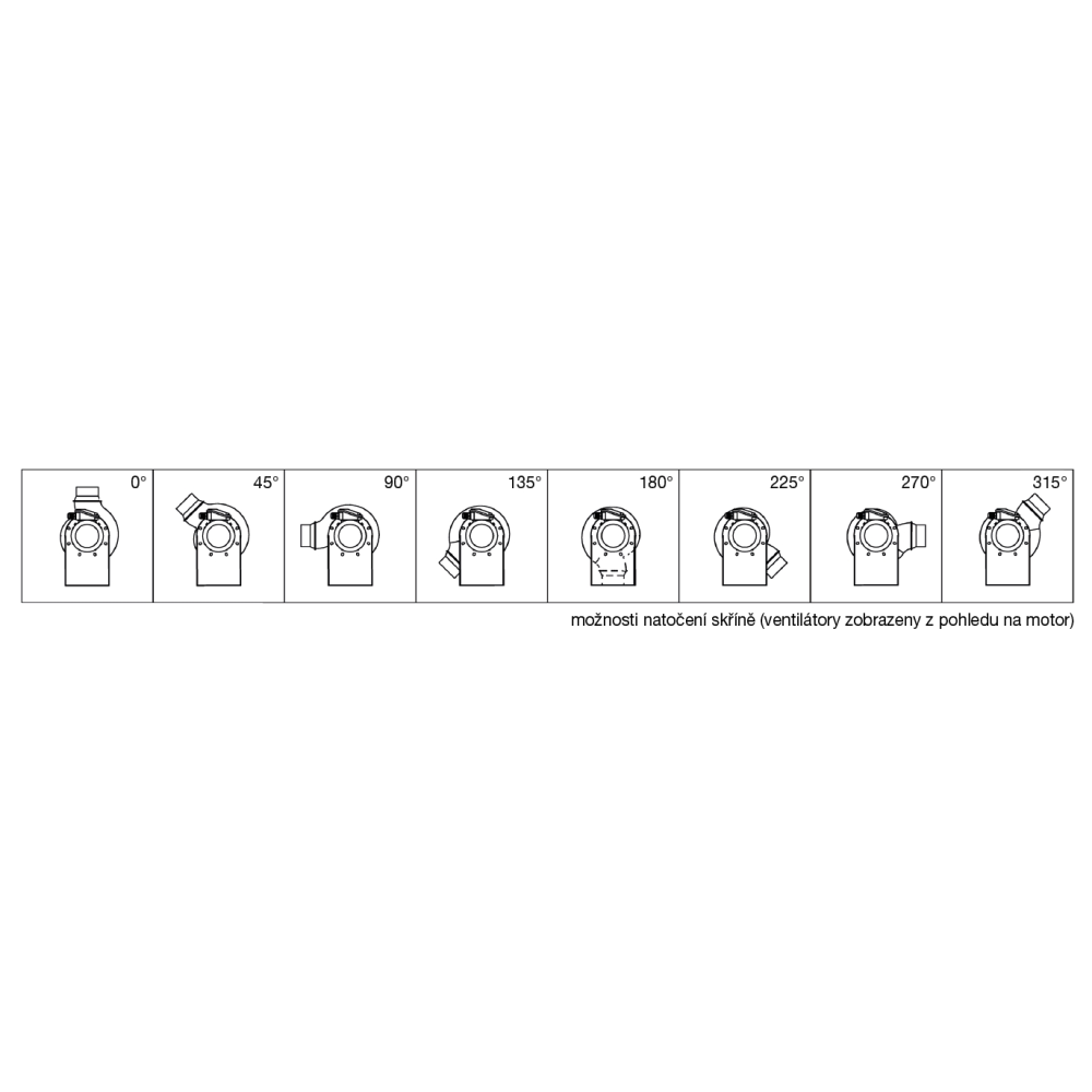 2 alebo 4-pólový jednofázový alebo trojfázový asynchrónny motor, izolačná trieda F, guľôčkové ložiská plnené tukom na celú životnosť. Motor je umiestnený mimo prúdu vzduchu. Trieda ochrany IP55. Konštrukcia pre prostredie s nebezpečenstvom výbuchu alebo vonkajšie prostredie na požiadanie.