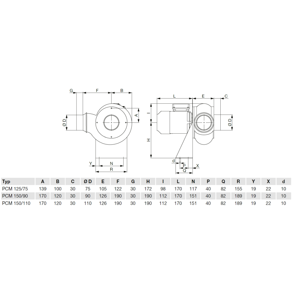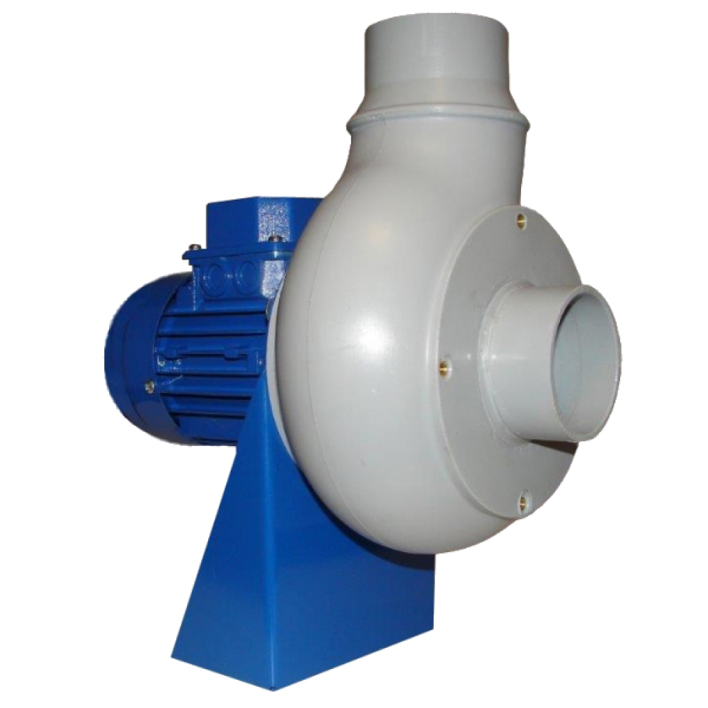 Špirálová skriňa radiálneho ventilátora v ľavom alebo pravom vyhotovení je štandardne vyrobená z PE alebo PEel (PPel na požiadanie). Na spoje sa používajú skrutky z nehrdzavejúcej ocele. Teplota vzduchu -15 ˚C až +70 ˚C, teplota okolia do +40 ˚C.