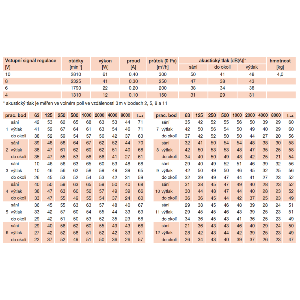 Ventilátor v každej polohe osi motora. Kryt nesmie prenášať mechanické namáhanie z potrubia, odporúča sa pružné pripojenie k potrubiu.