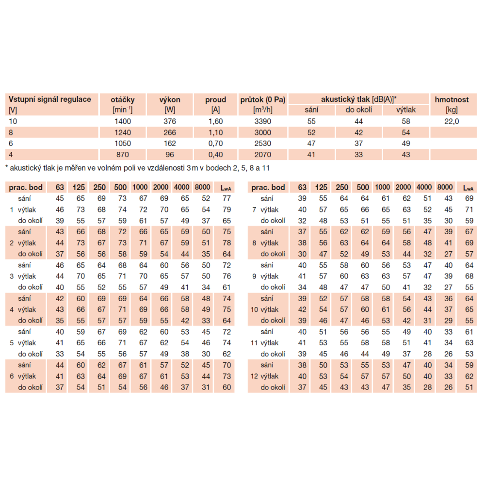 Ventilátor v každej polohe osi motora. Kryt nesmie prenášať mechanické namáhanie z potrubia, odporúča sa pružné pripojenie k potrubiu.