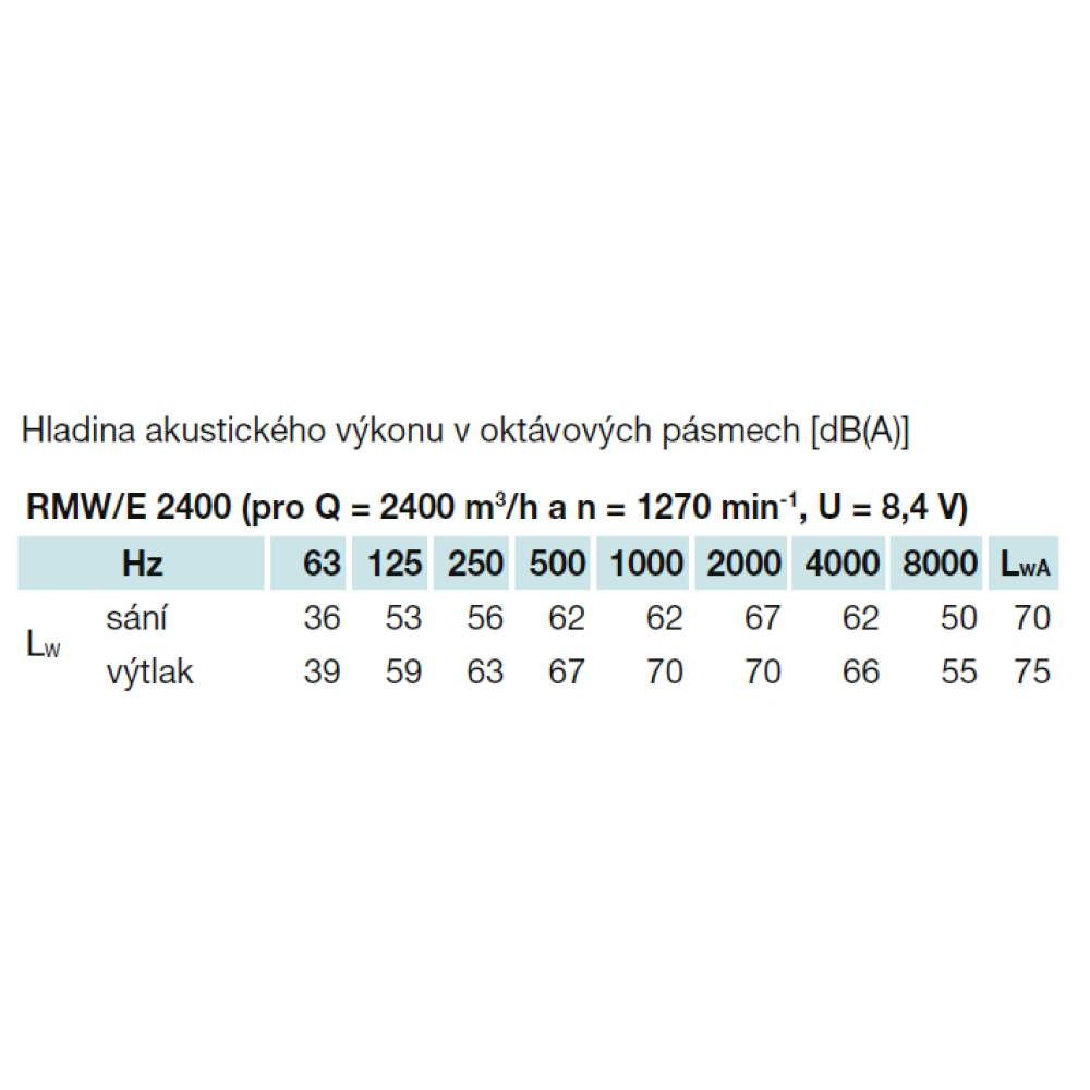 Hluk uvedený v tabuľkách predstavuje hladiny akustického výkonu na vstupe a výstupe z jednotky s korekciou A a hladinu akustického tlaku vo vzdialenosti 1 m od prevádzkovej strany jednotky (vo voľnom poli Q = 2).