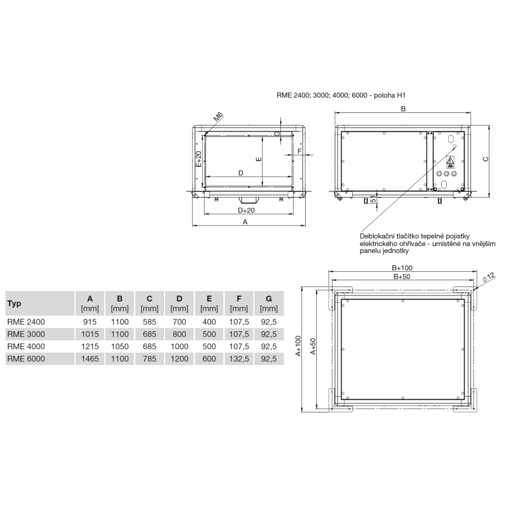 Napájacie napätie jednotiek je 1 x 230 V / 50 Hz alebo 3 x 400 V / 50 Hz a závisí od vybavenia jednotky. Prívodné káble, káble k snímačom, napájacie káble k ventilátorom sa do jednotky privádzajú cez plastové priechodky v stene jednotky, ktoré nie sú súčasťou dodávky jednotky. Svorkovnica elektrického ohrievača v jednotkách RME je prístupná po odstránení vonkajšieho krytu. Elektrický motor ventilátora má prívodný napájací kábel vedený do plastovej spojovacej skrinky so svorkovnicou umiestnenou vo vnútri jednotky.