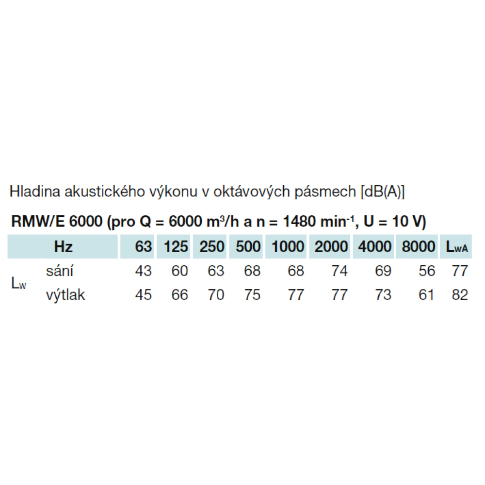 Hluk uvedený v tabuľkách predstavuje hladiny akustického výkonu na vstupe a výstupe z jednotky s korekciou A a hladinu akustického tlaku vo vzdialenosti 1 m od prevádzkovej strany jednotky (vo voľnom poli Q = 2).