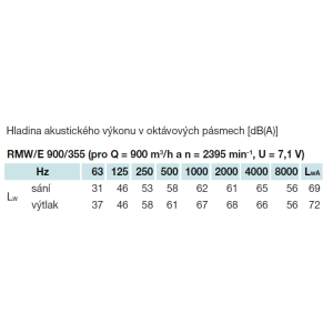 Hluk uvedený v tabuľkách predstavuje hladiny akustického výkonu na vstupe a výstupe z jednotky s korekciou A a hladinu akustického tlaku vo vzdialenosti 1 m od prevádzkovej strany jednotky (vo voľnom poli Q = 2).