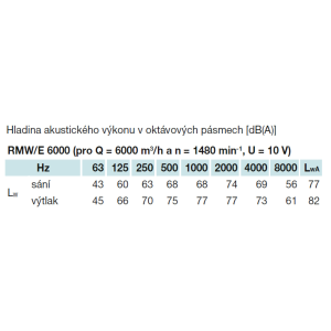 Hluk uvedený v tabuľkách predstavuje hladiny akustického výkonu na vstupe a výstupe z jednotky s korekciou A a hladinu akustického tlaku vo vzdialenosti 1 m od prevádzkovej strany jednotky (vo voľnom poli Q = 2).