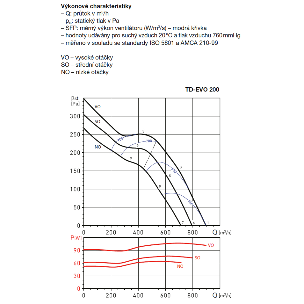 Motory na striedavý prúd vo ventilátoroch TD-EVO 125 až TD-EVO 315 majú trojité vinutie, čo umožňuje prevádzku s tromi rýchlosťami. Ventilátory TD-EVO VAR majú integrovaný triakový regulátor, ktorý umožňuje plynulú zmenu výkonu podľa nastavenia potenciometra v svorkovnici ventilátora alebo analógového vstupu 0-10 V. Motory sú vybavené tepelnou ochranou. Ložiská sú guľôčkové s tukovým tesnením na celú životnosť. Izolačná trieda F, stupeň krytia IP44. Napájacie napätie 230 V, 50/60 Hz.