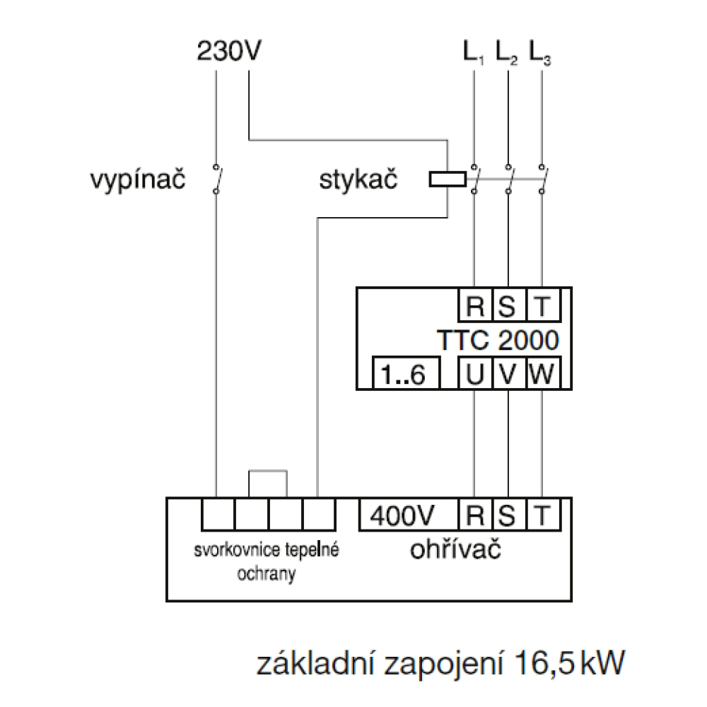 Ohrievač musí mať pripojený bezpečnostný aj prevádzkový termostat. Zaťaženie v každej fáze musí byť rovnomerné.