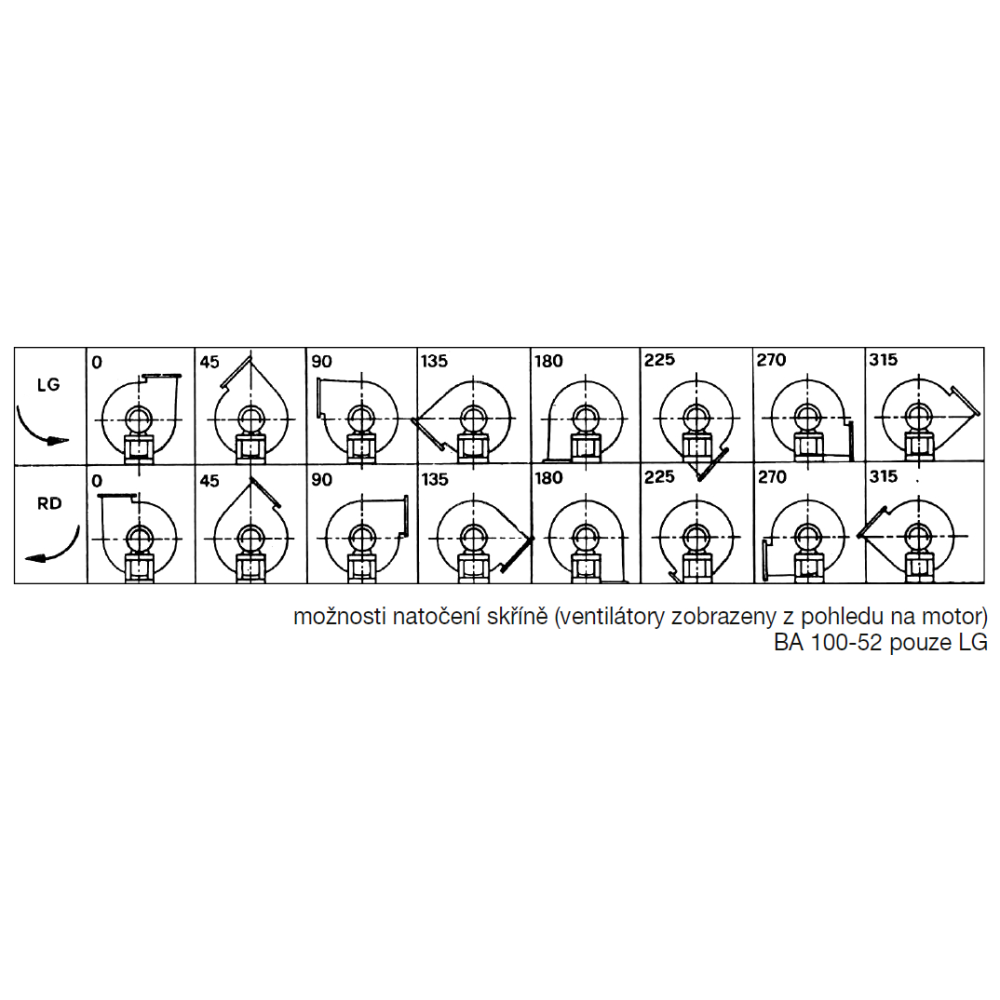 2, 4 alebo 6-pólový jednofázový alebo trojfázový asynchrónny motor, izolačná trieda F, guľôčkové ložiská plnené tukom na celú životnosť. Motor je umiestnený mimo prúdu vzduchu. Trieda ochrany IP55. K dispozícii aj pre oblasti s nebezpečenstvom výbuchu (na požiadanie).