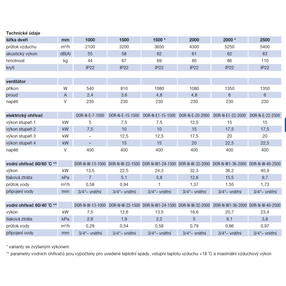 DOR-N-E-22-2500 vzduchová clona s el. ohrevom