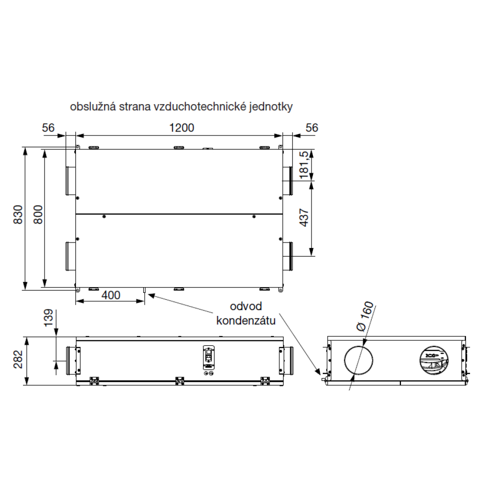 je samonosnej konštrukcie a je vyrobená z 25 mm hrubých panelov s izoláciou z polyuretánovej peny. Skriňa a vnútorné časti sú vyrobené zo špeciálneho materiálu ALUZINC®, ktorý je vysoko odolný proti korózii a má atraktívny vzhľad. Trieda vzduchotesnosti 2. Vstupné a výstupné otvory s priemerom 160 mm na pripojenie potrubia. Prístup k revízii sa nachádza na bočnej strane skrinky.