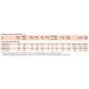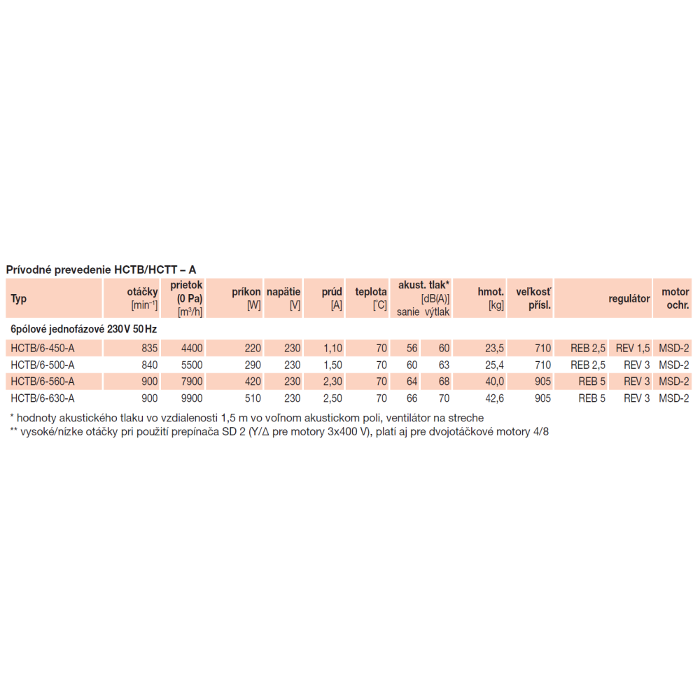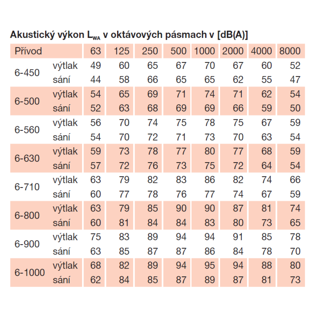 emitovaný ventilátorom je uvedený v tabuľkách ako hodnoty akustického tlaku vo vzdialenosti 1,5 m, merané vo voľnom akustickom poli.