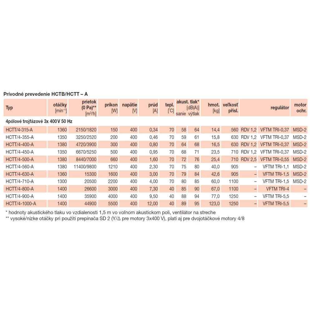 emitovaný ventilátorom je uvedený v tabuľkách ako hodnoty akustického tlaku vo vzdialenosti 1,5 m, merané vo voľnom akustickom poli.