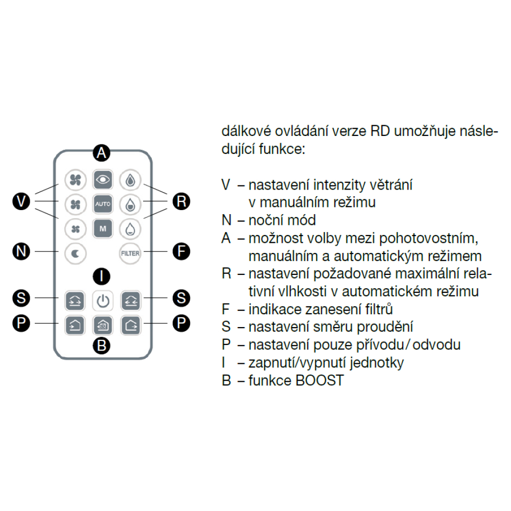 Štandardné vyhotovenie jednotky umožňuje manuálne nastavenie intenzity vetrania v 3 stupňoch pomocou diaľkového ovládača. Variant RD disponuje plne automatickým režimom, ktorý na základe integrovaného snímača vlhkosti zabezpečuje plynulú reguláciu otáčok bez nutnosti akéhokoľvek ďalšieho zásahu do ovládania jednotky. Jednotku vo variante RD je možné ovládať aj manuálne. Pomocou diaľkového ovládača je možné nastaviť 3 stupne intenzity vetrania a prepínať medzi automatickým, manuálnym, pohotovostným a nočným režimom. Jednotka ďalej disponuje funkciou BOOST, pri ktorej počas výrobne prednastaveného času vetrá s maximálnou možnou intenzitou. Okrem toho je možné jednotky vo variante RD prepojiť tak, aby vetraly protichodne v režime nasávania a výfuku. V režime „striedania“ je nastavený štandardný interval zmeny smeru prúdenia 70 s.