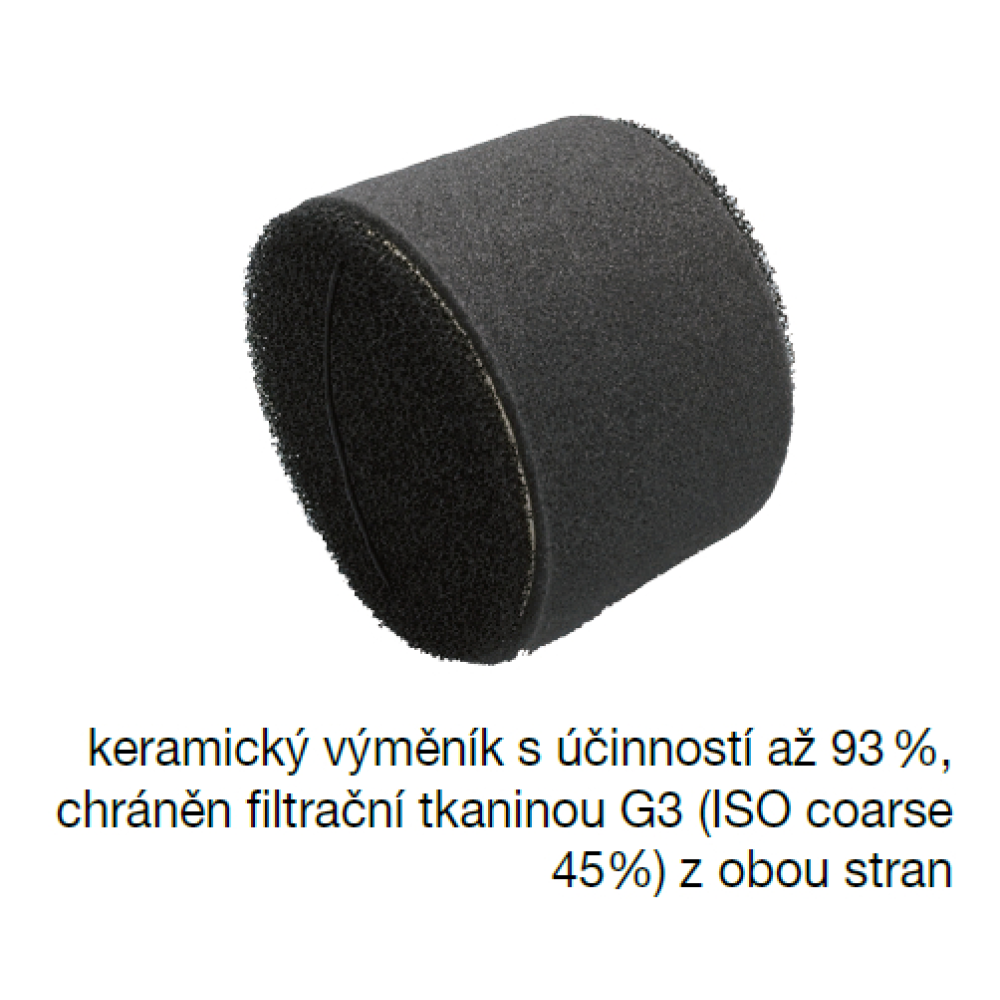 Je vybavená regeneračným výmenníkom z keramického materiálu. Dosahuje účinnosť SZT až 93 %. Pre jednoduchú údržbu a servis je výmenník prístupný po odstránení vnútornej časti jednotky obsahujúcej ventilátor.