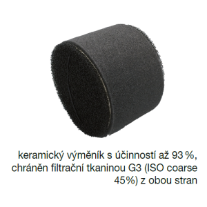 Na oboch stranách výmenníka je umiestnený filter triedy G3 (ISO coarse 45 %).