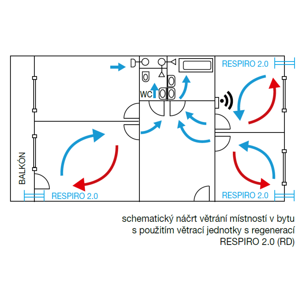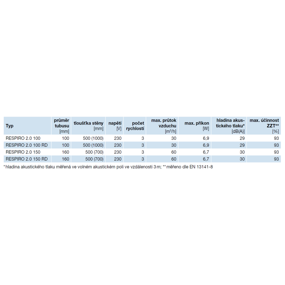 • RESPIRO 2.0 100 RD, 150 RD – 3 rýchlosti, nastavenie rôznych prevádzkových režimov, diaľkový ovládač, automatický prevádzka v závislosti od vlhkosti, možnosť prepojenia viacerých jednotiek medzi sebou