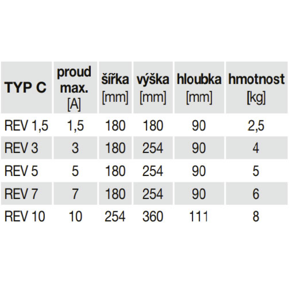 - napájacie napätie: 230 V (REV), 400 V (RDV)