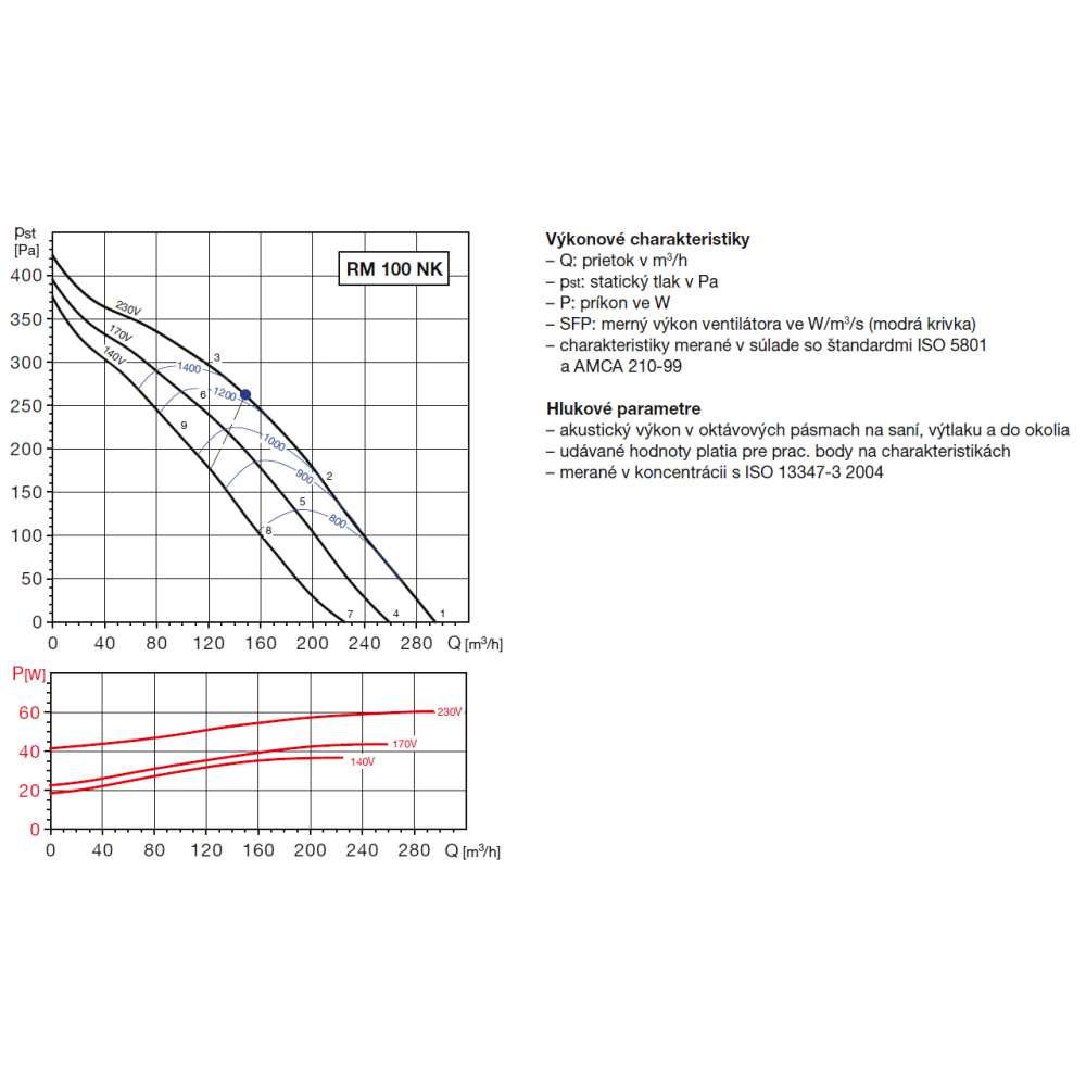 Motory ventilátorov RM N sú 1-fázové pre napätie 230 V, RM N T sú 3-fázové pre napätie 230/400 V. Tepelná poistka je umiestnená vo vinutí motora. Ložiská sú guličkové s tukovou náplňou po dobu životnosti. Trieda izolácie B, krytie IP44 (veľkosti 100 až 250), trieda izolácie F, krytie IP44 (veľkosť 315), trieda izolácie F, krytie IP54 (veľkosti 355).