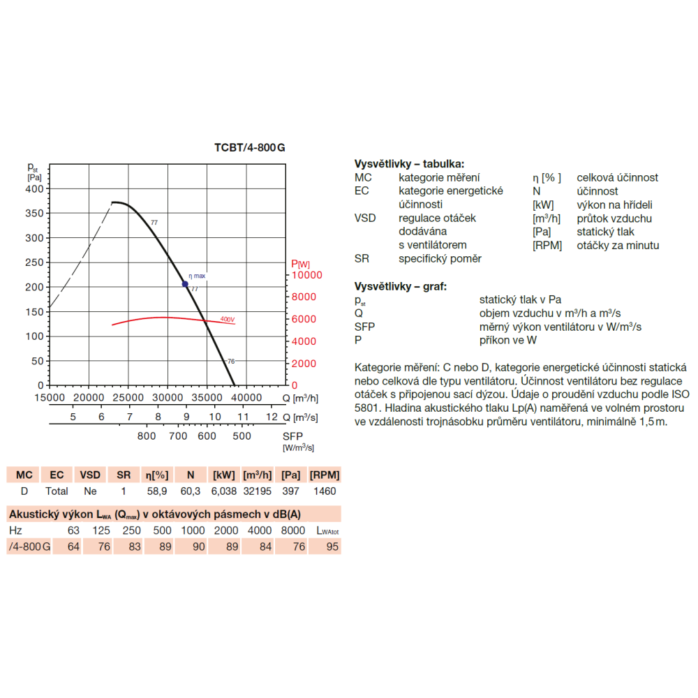 Uvedené vo výkonových charakteristikách zodpovedajú hodnotám akustického tlaku vo voľnom poli vo vzdialenosti trojnásobku priemeru obežného kolesa (minimálne 1,5 m).
