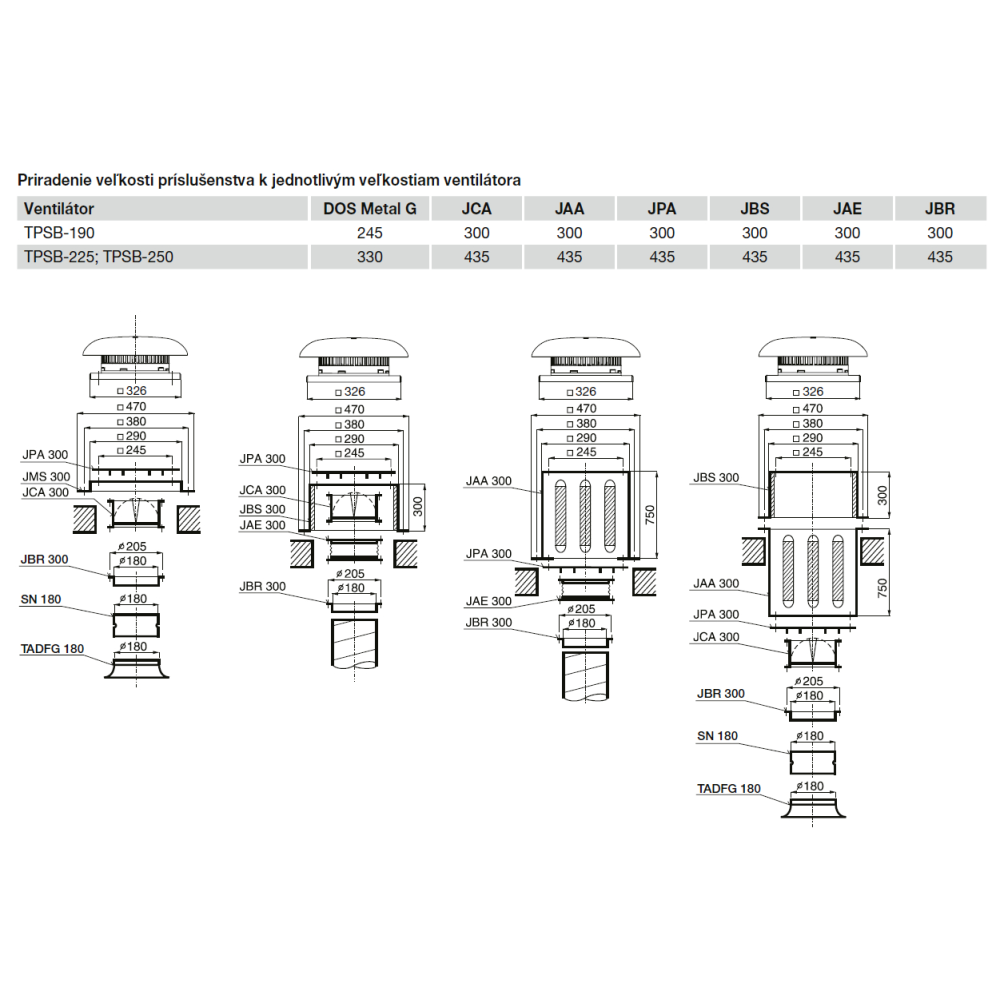 Strešné ventilátory TPSB sa montujú montážnou základňou na vodorovné strešné konštrukcie alebo stavebne pripravené murované sokle. Ďalej je možné použiť sokle JMS a JBS.