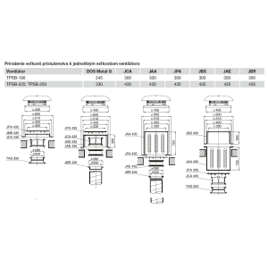 Strešné ventilátory TPSB sa montujú montážnou základňou na vodorovné strešné konštrukcie alebo stavebne pripravené murované sokle. Ďalej je možné použiť sokle JMS a JBS.