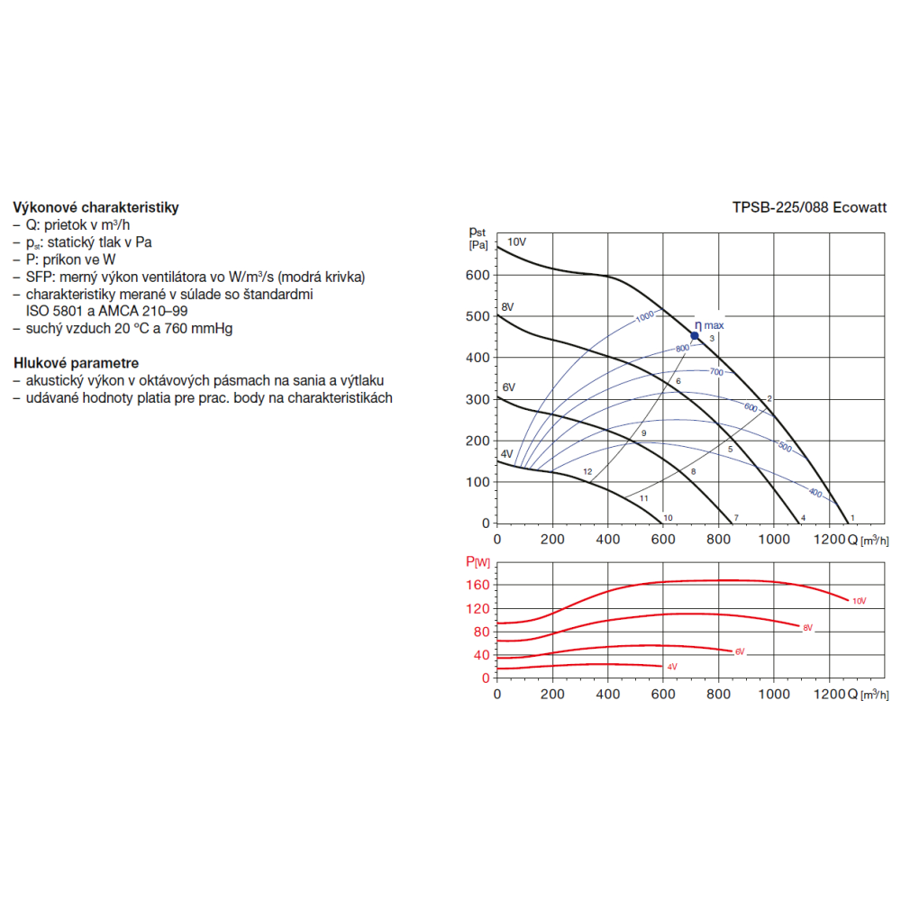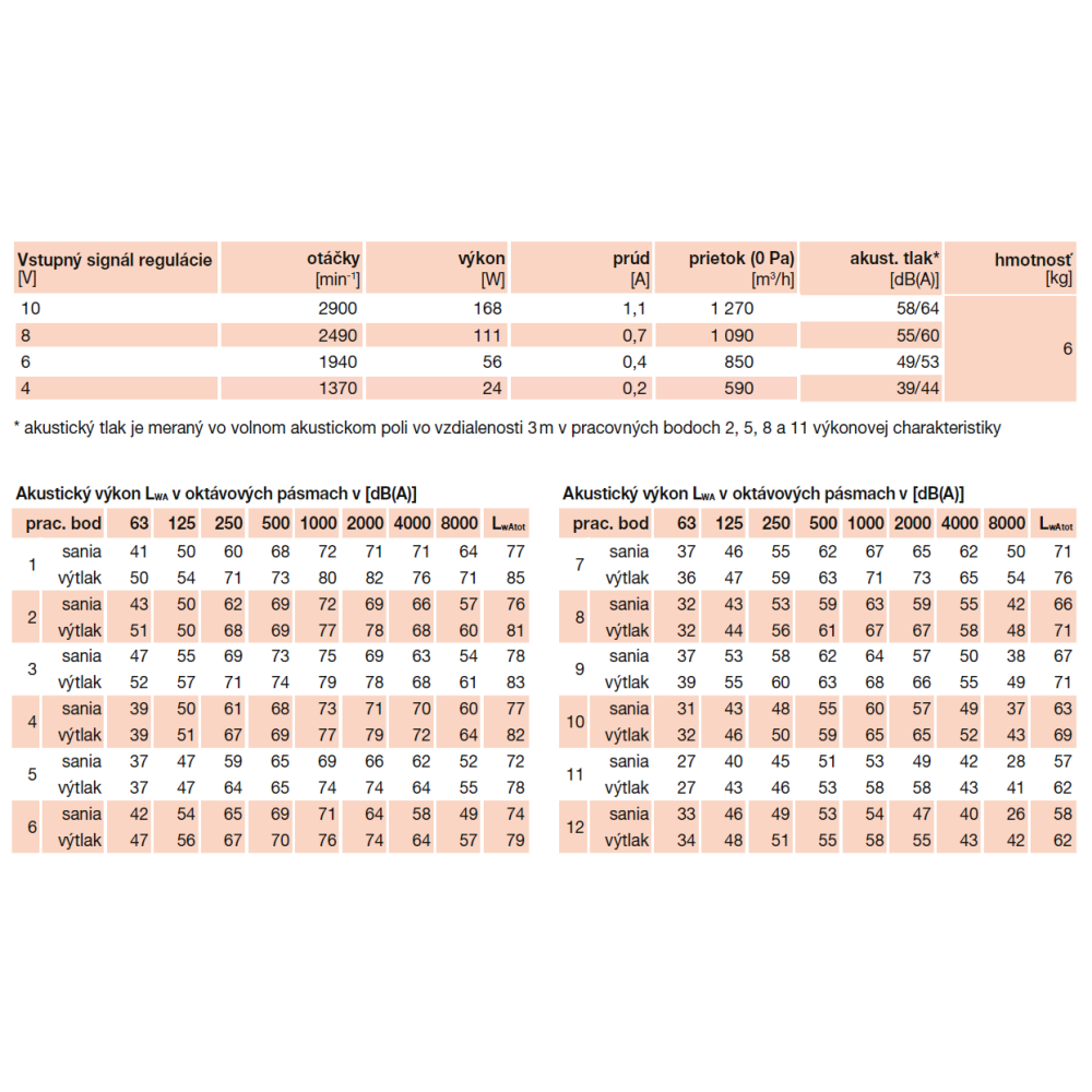 EC motor s externým rotorom a tepelnou ochranou proti preťaženiu. Guľôčkové ložiská s tukovou náplňou na dobu životnosti. Krytie IP44, pracovná teplota -20 až +60°C (190/060) alebo -20 až +50°C (225/088, 250/084).