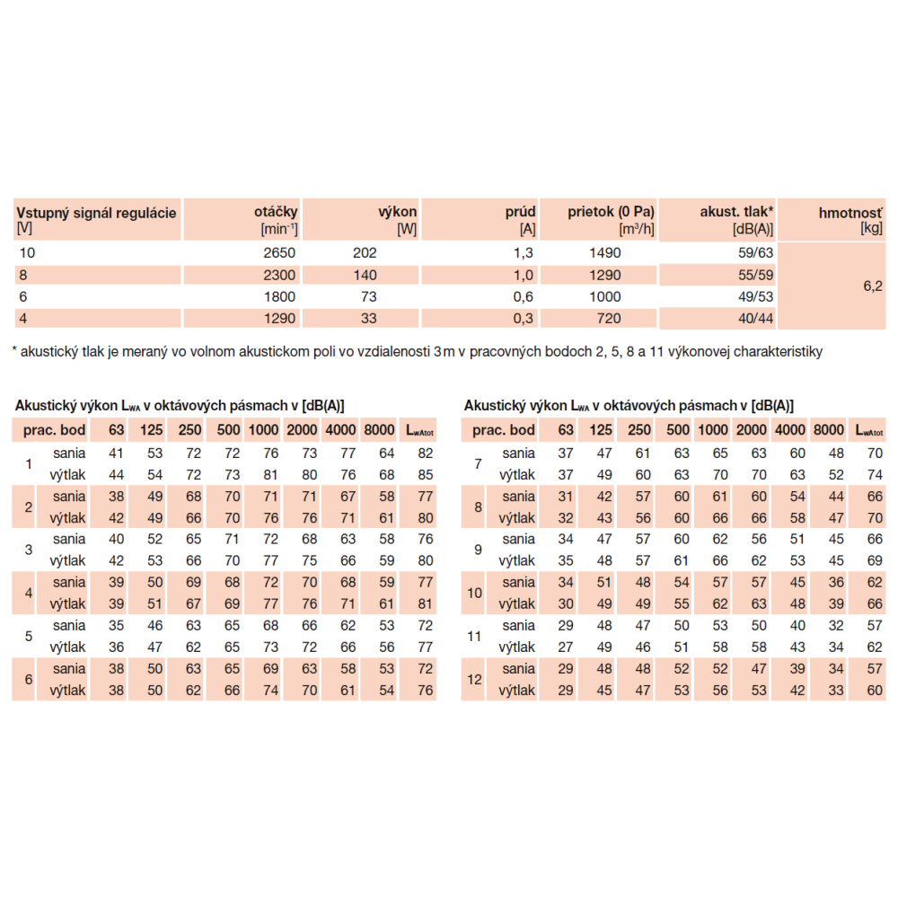 EC motor s externým rotorom a tepelnou ochranou proti preťaženiu. Guľôčkové ložiská s tukovou náplňou na dobu životnosti. Krytie IP44, pracovná teplota -20 až +60°C (190/060) alebo -20 až +50°C (225/088, 250/084).