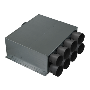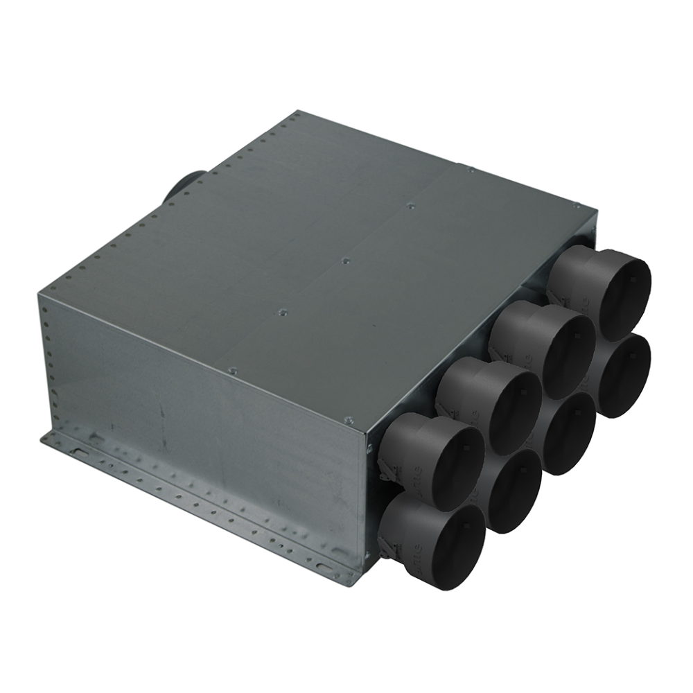 Univerzálny kruhový rozvod vzduchu na rozvod vzduchu v obytných priestoroch s plastovými hrdlami Ø 75/90 mm vrátane integrovanej regulačnej klapky s aretáciou.