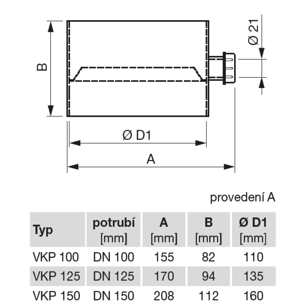 - v prevedení pre potrubia DN 125 (pripojenie cez vnútornú spojku SV 125)